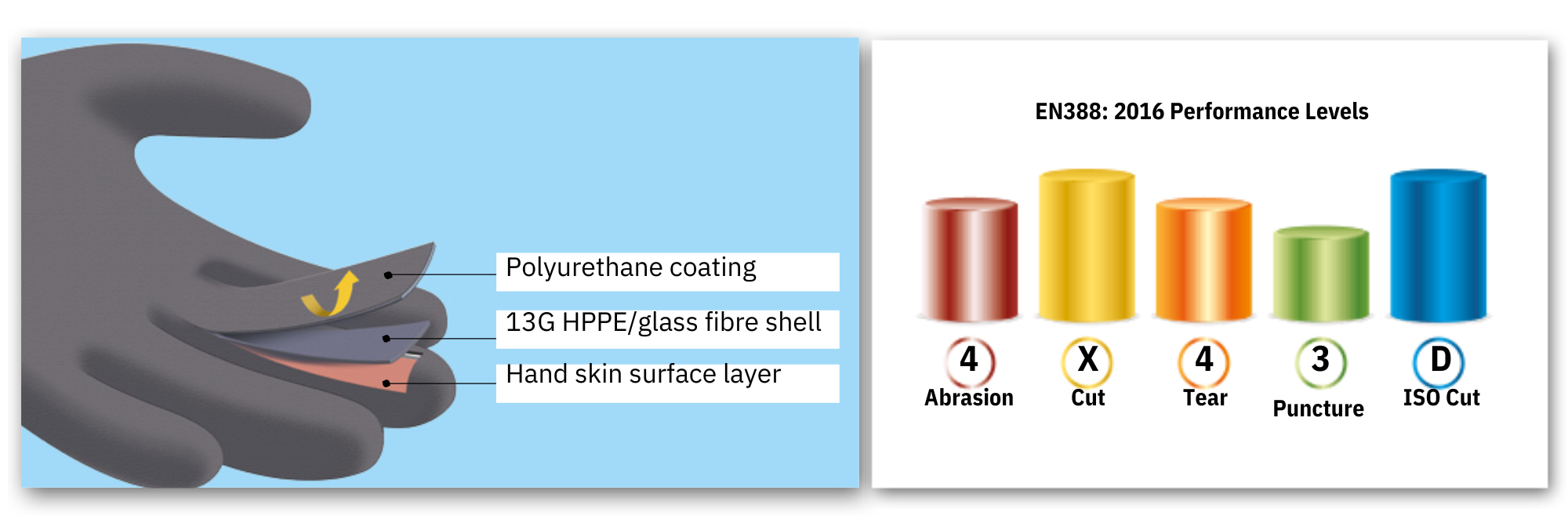 • 13G seamless breathable economical HPPE/glass fibre cut level 5 shell