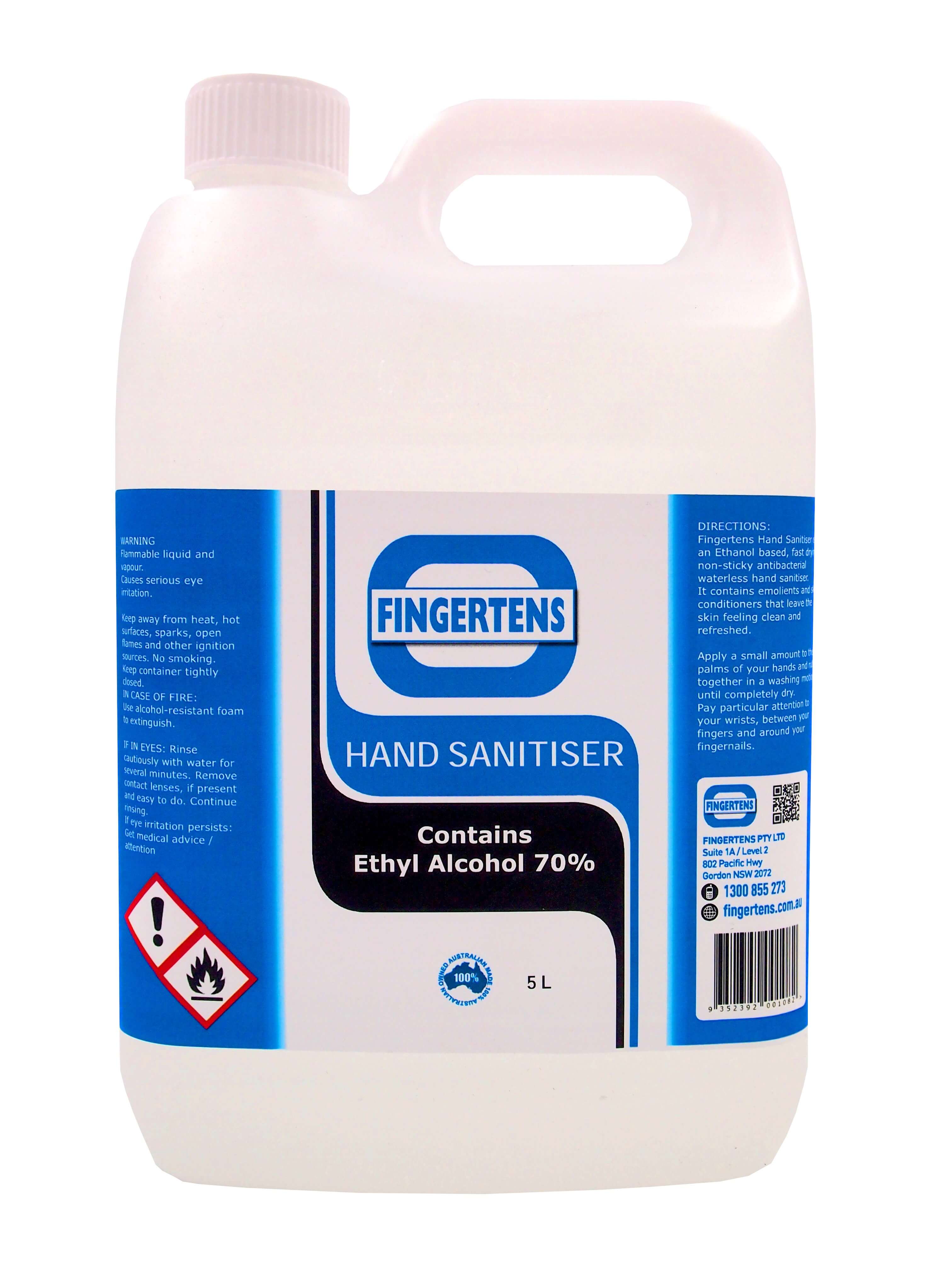 Fingertens Hand Sanitiser is non-greasy and has built-in skin conditioners to help prevent the drying effects of ethyl alcohol.